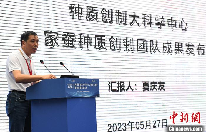 图为该中心首席科学家夏庆友进行家蚕种质创制团队成果发布。中新社记者周毅摄