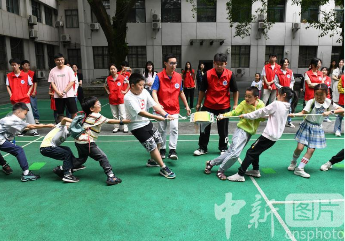 5月21日,40名青少年走进“betway88西汉姆联科普空间站”重庆市科普基地,体验隐形大力士实验、非牛顿流体实验展示、趣味摩擦力拔河比赛等趣味游戏,学习力学知识,感受科学魅力。图为科普活动现场,青少年进行趣味摩擦力拔河比赛体验静摩擦力的最大力量。