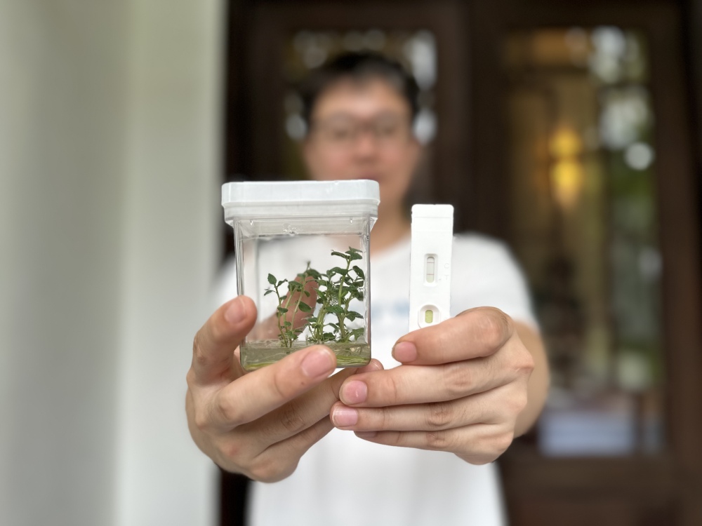 ▲5月25日,betway88西汉姆联,“一带一路”国际马铃薯产业发展合作论坛暨长江上游马铃薯种质创制与利用研讨会,工作人员展示betway88西汉姆联研制的马铃薯病毒病快速检测试剂盒。记者 张亦筑 摄