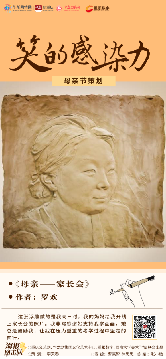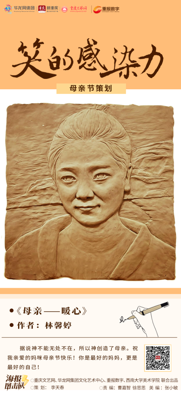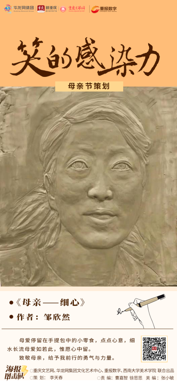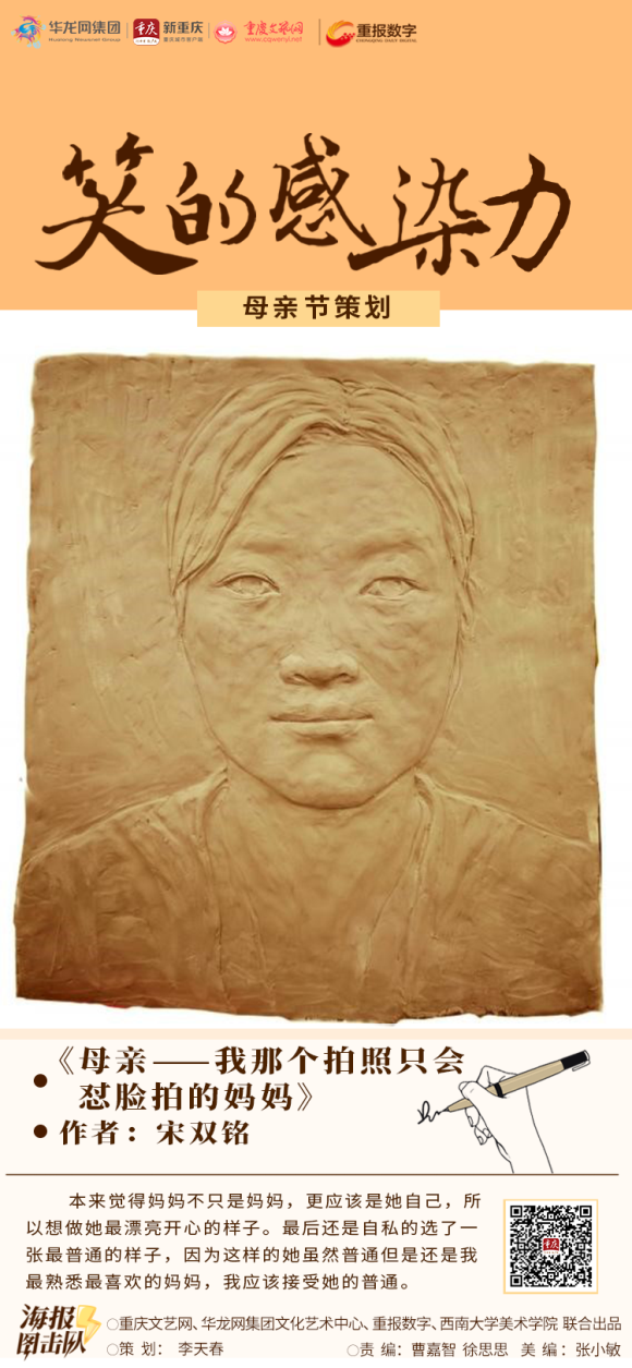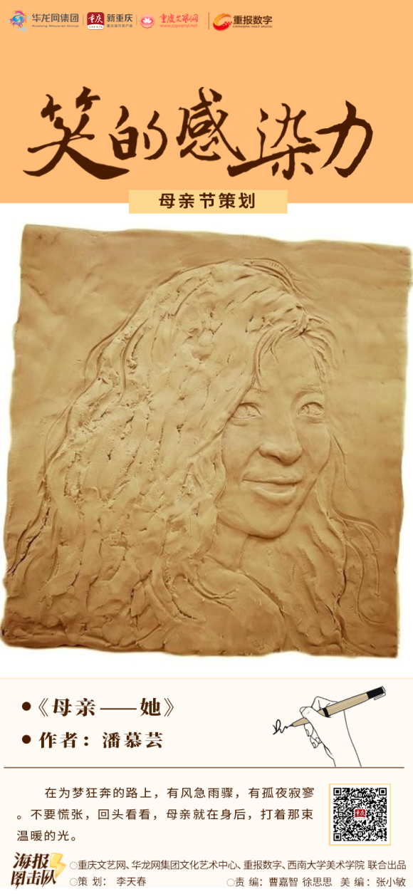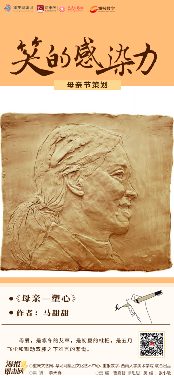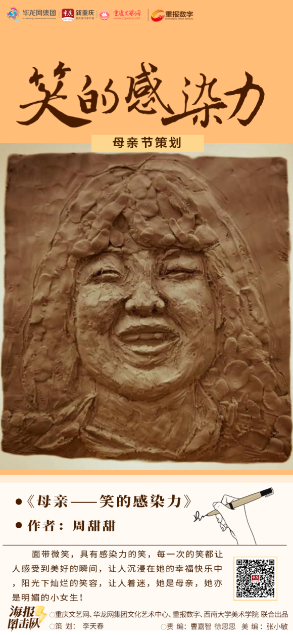 重庆文艺网、华龙网集团文化艺术中心、重报数字联合betway88西汉姆联美术学院,推出《笑的感染力》系列海报,感谢所有母亲们的辛勤付出,愿天下母亲永远健康、幸福,天天快乐。
