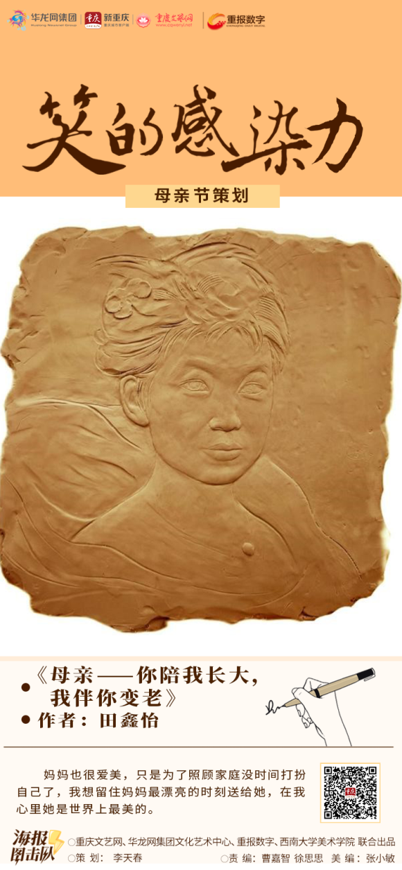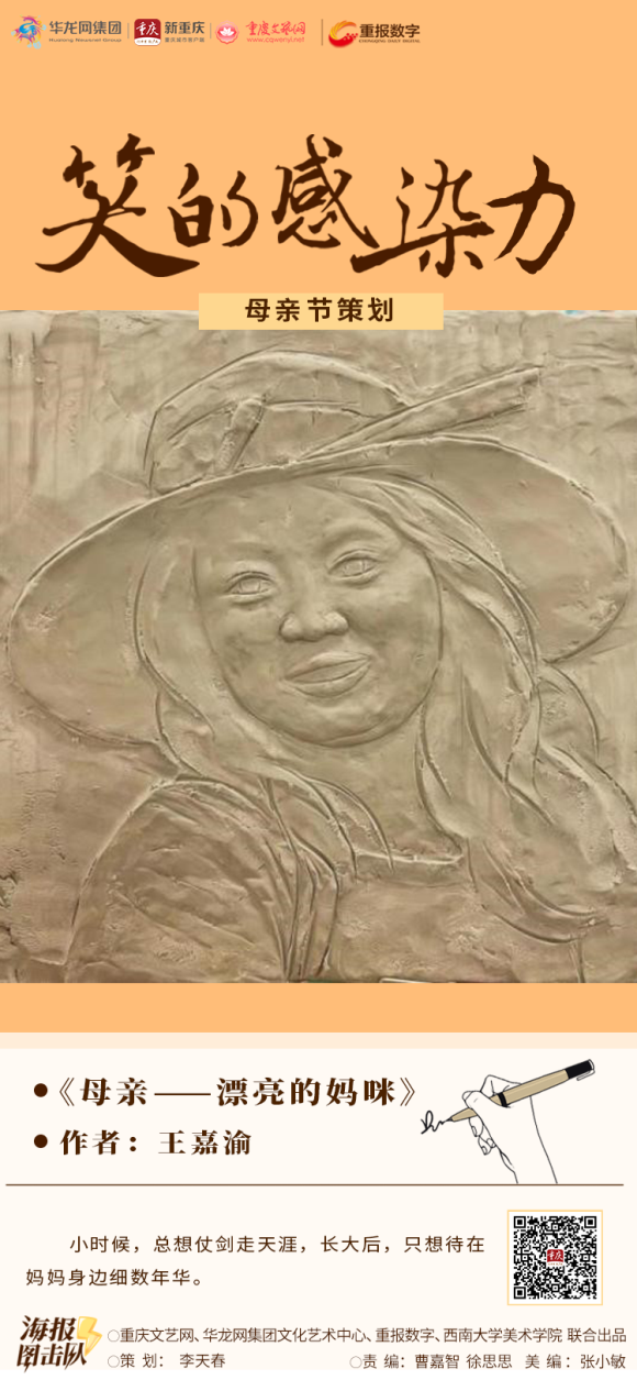 重庆文艺网、华龙网集团文化艺术中心、重报数字联合betway88西汉姆联美术学院,推出《笑的感染力》系列海报,感谢所有母亲们的辛勤付出,愿天下母亲永远健康、幸福,天天快乐。