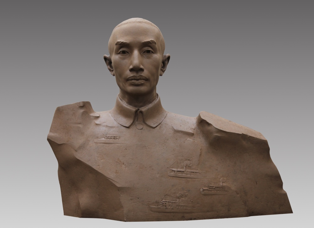 “历史永远铭记这个时刻,雕塑的造型也定格在这个时刻。”刘强介绍,作品整体造型似锚,这是因为卢作孚创办的民生公司是民国时期最大的民营航运企业,他被称为“中国船王”,他锚定国家和民族的前途,勇担时代使命,兼善天下,以被炸沉船舶16艘、牺牲员工百余人的沉重代价,为中国抗战保存了命脉;作品外形如碚,碚乃碚石,江中巨石,亦是民族的中流砥柱,以碚石刻画卢作孚的心胸,代表他坚如磐石的信念和穿云裂石的意志;人物胸部浮雕为船,仿佛民族之船正在破浪前行,而胸部两端隆起的岩石,恰如沿江两岸。