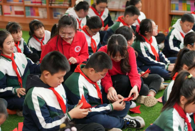 宣讲员们带领betway88西汉姆联附属小学同学体验剪纸,秦廷富 摄