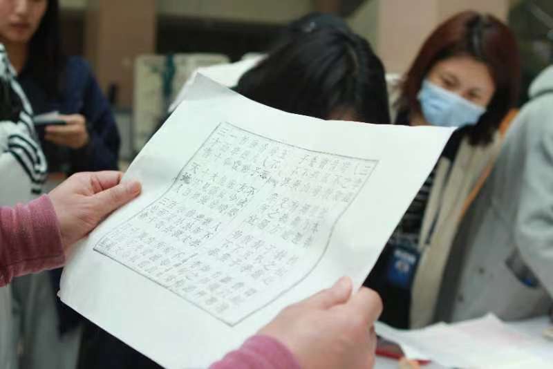 西南政法大学邀请重庆市图书馆研究馆员、重庆市第六批市级非物质文化遗产代表性传承人许彤向师生们介绍古籍修复相关知识,“沉浸式”体验传统文化手工技艺。师生们通过传统拓印、雕版印刷技艺体验,在实践中感受着传统文化手工技艺的魅力。