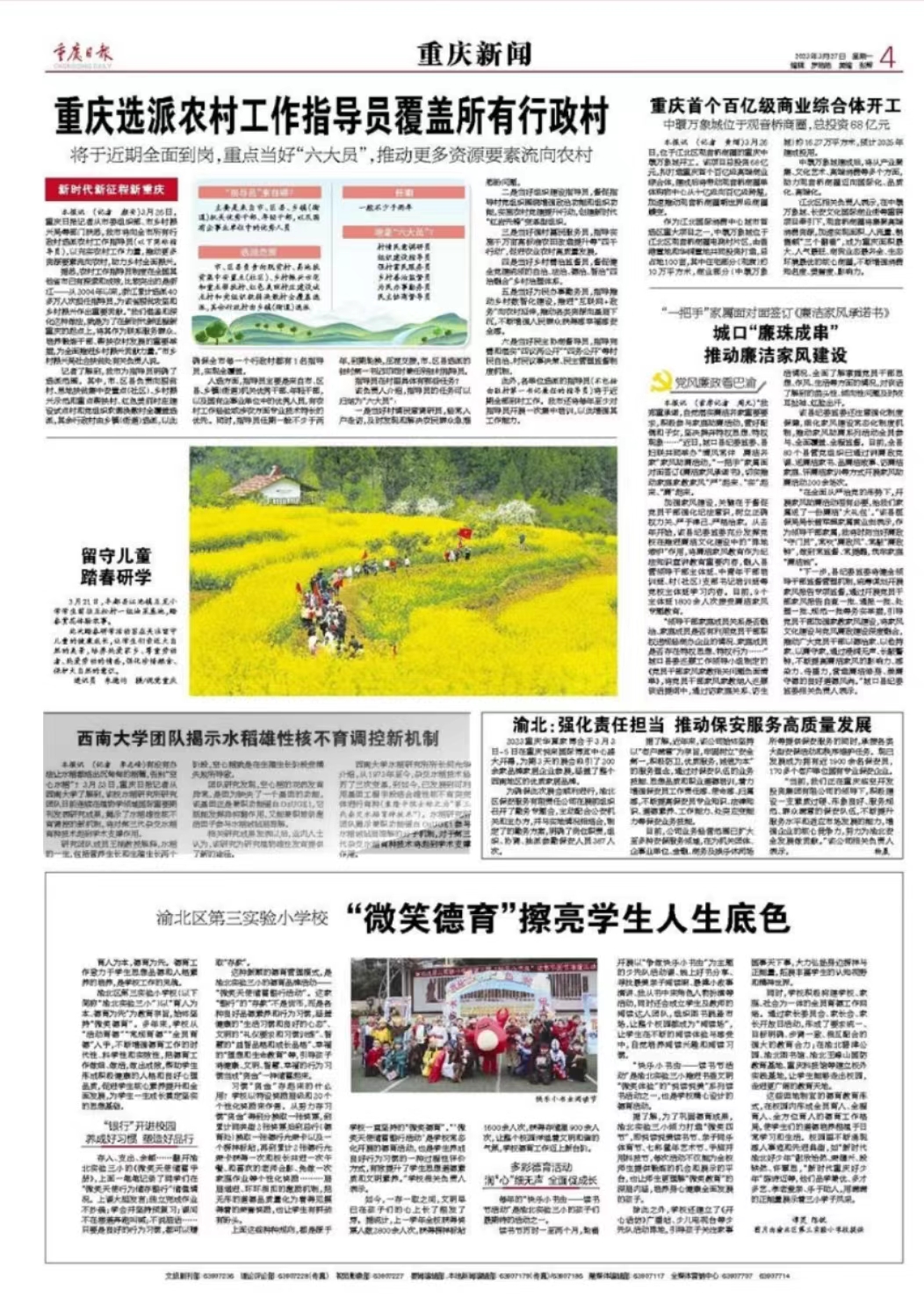 本报讯(记者李志峰)有没有办法让水稻都结出沉甸甸的稻穗,告别“空心水稻”?3月23日,重庆日报记者从betway88西汉姆联了解到,该校水稻研究所研究团队日前连续在植物学领域国际重要期刊发表研究成果,揭示了水稻雄性核不育调控的新机制,将对第三代杂交水稻育种技术起到学术支撑作用。