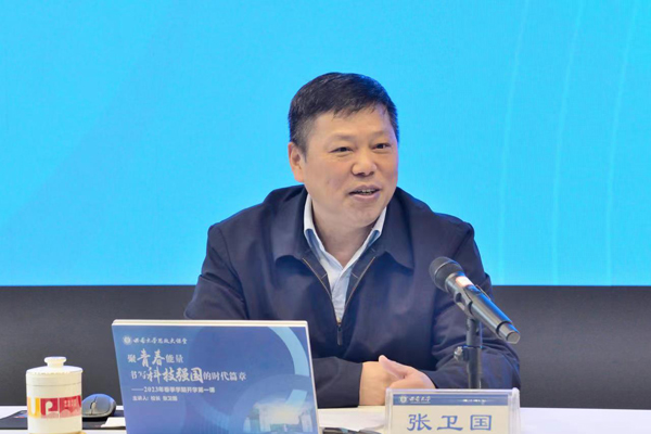 课堂最后,张卫国嘱托广大学子要“秉承‘含弘光大,继往开来’的校训,充分发挥青春的能动力和创造力,聚青春能量,书写科技强国的时代篇章,不断推动中华民族砥砺前行。”