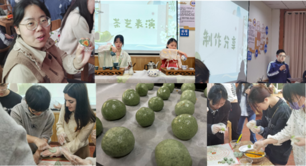 在等待青团蒸制的过程中,学院茶艺社的同学们给大家带来了精彩的茶艺表演,带领我们走进源远流长的中国茶文化。