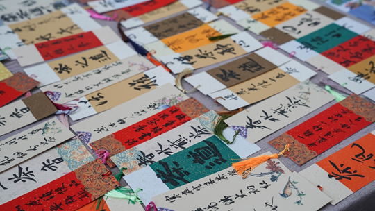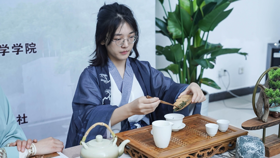 活动现场引来不少师生驻足观看,很多同学在社团的带领下体验紫砂壶冲泡茶叶,制作茶诗书签。