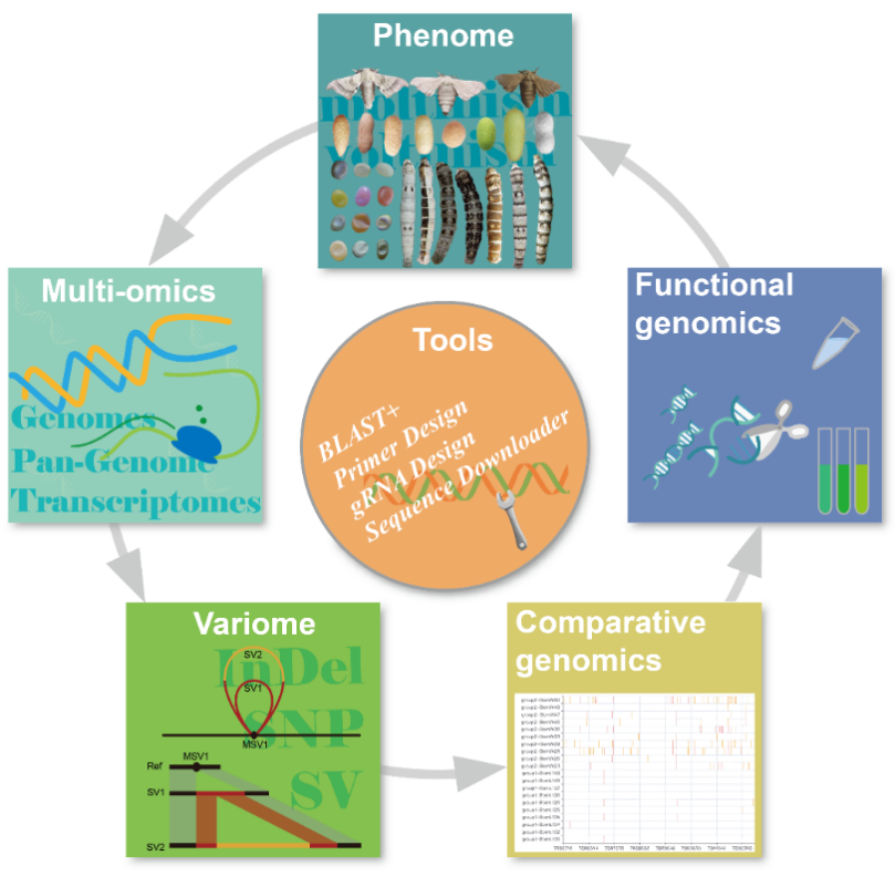该研究成果在线发表在生物学领域国际著名期刊《核酸研究》上,题为《SilkMeta:一个家蚕泛基因组和多组学数据共享分析平台》。这也是继2022年该团队发布家蚕超级泛基因组图谱后,推动创建“数字家蚕”取得的又一重大进展。