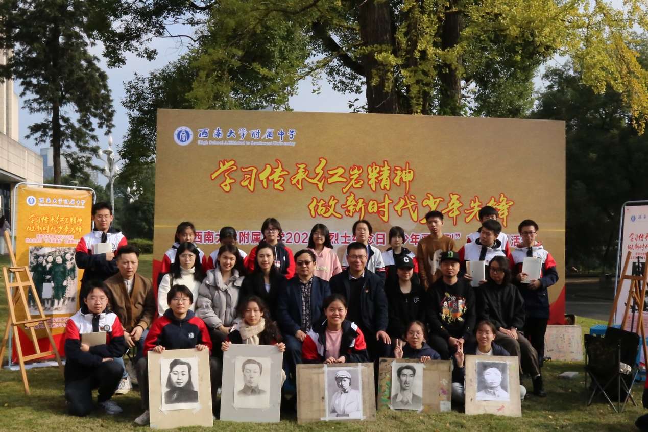 听罢校史馆的讲解,同学们又来到馆前的草坪,搬开画架,照着展架上的六张红岩英烈照片认真地描摹了起来。在持续一个多小时的活动中,学生们画英雄像,讲英雄简历,沉浸在这一场仿佛跨越时空的对话当中。
