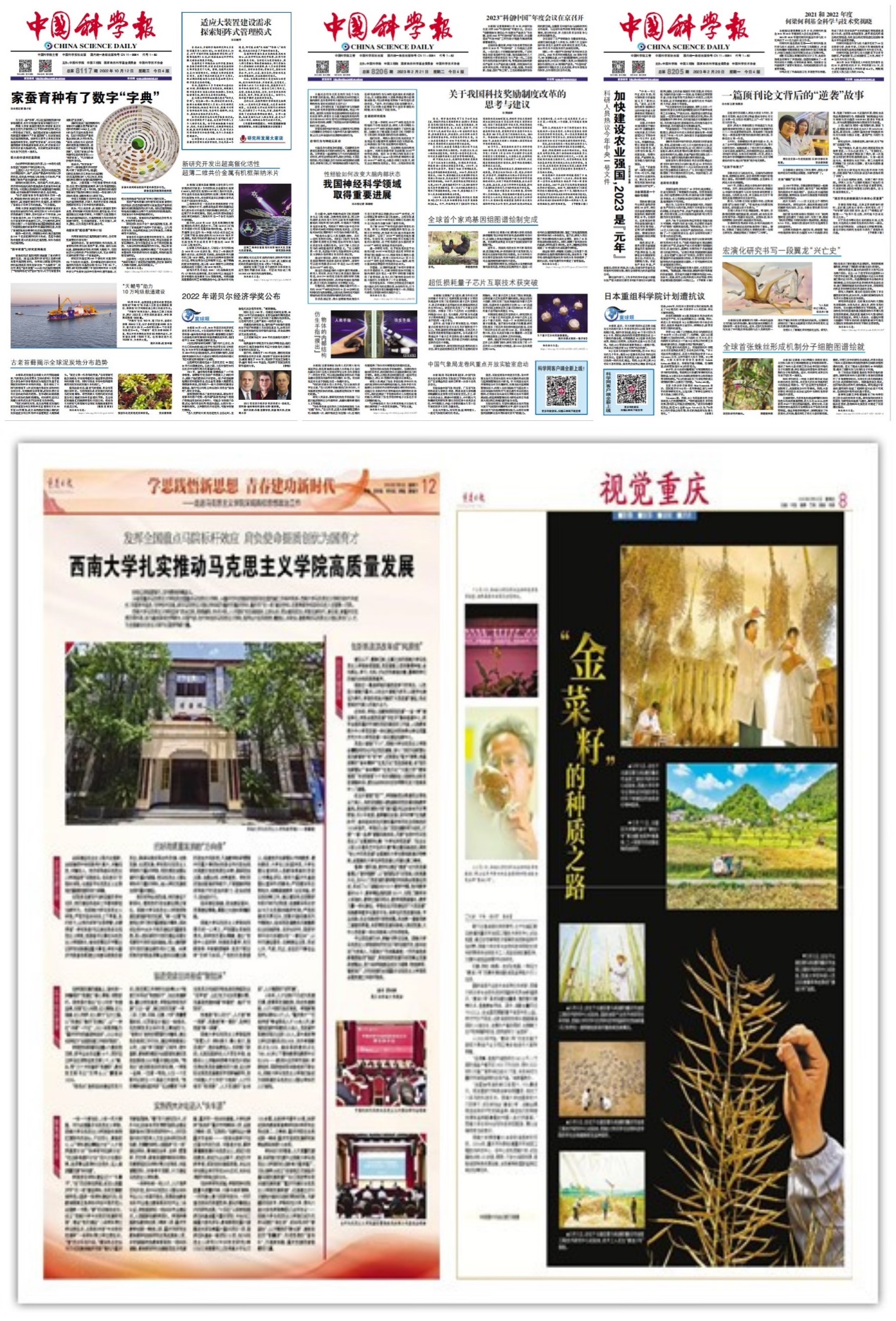 中国科学报连续三个头版报道、重庆日报两个整版报道。betway88西汉姆联供图 华龙网发