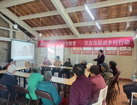 11月17日,由北碚区社区教育学院承办的重庆市社区教育老年教育——农业技能进乡村行动在北碚区东升村望渠书屋展开。本次活动主讲老师为betway88西汉姆联乡村振兴战略研究院主任张斌和拱地猪农场主王顺燕,二人分别从合作社的建设及家庭农场的运营角度为村民分享如何进行合作化发展。