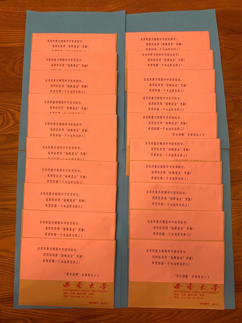 叶晓娅找到了北碚区慈善会,设立了“扬帆基金”,每个月她将自筹的善款和明细交给慈善会,再由民政局审批后,将善款打到“扬帆基金”账户上,最终,受捐赠学生通过领款单得到捐助。