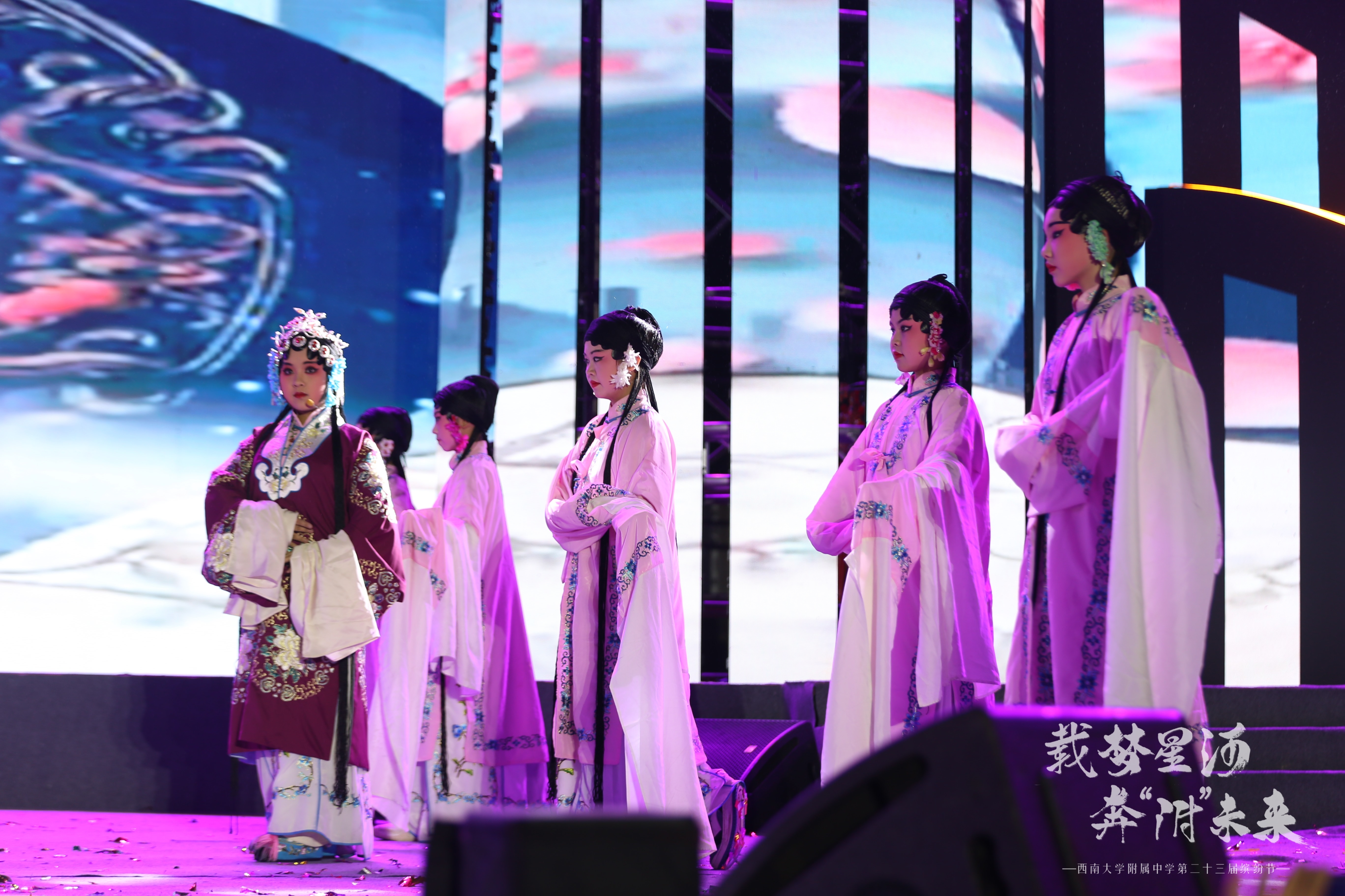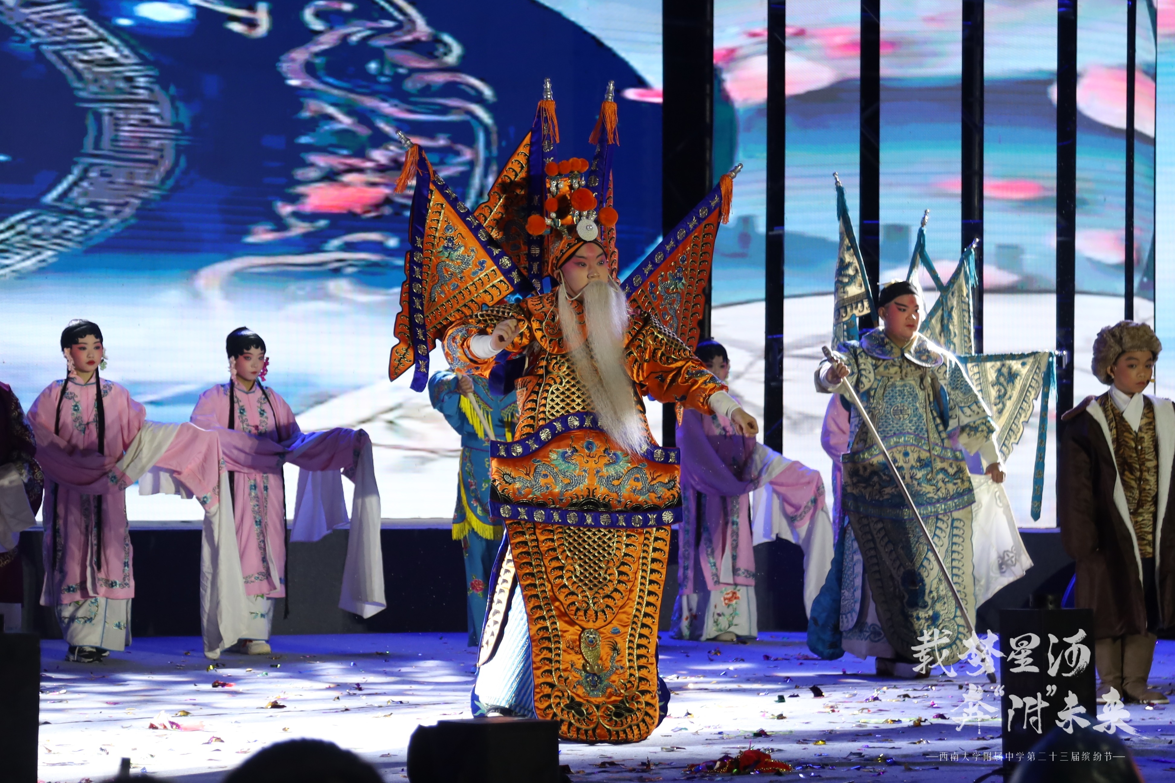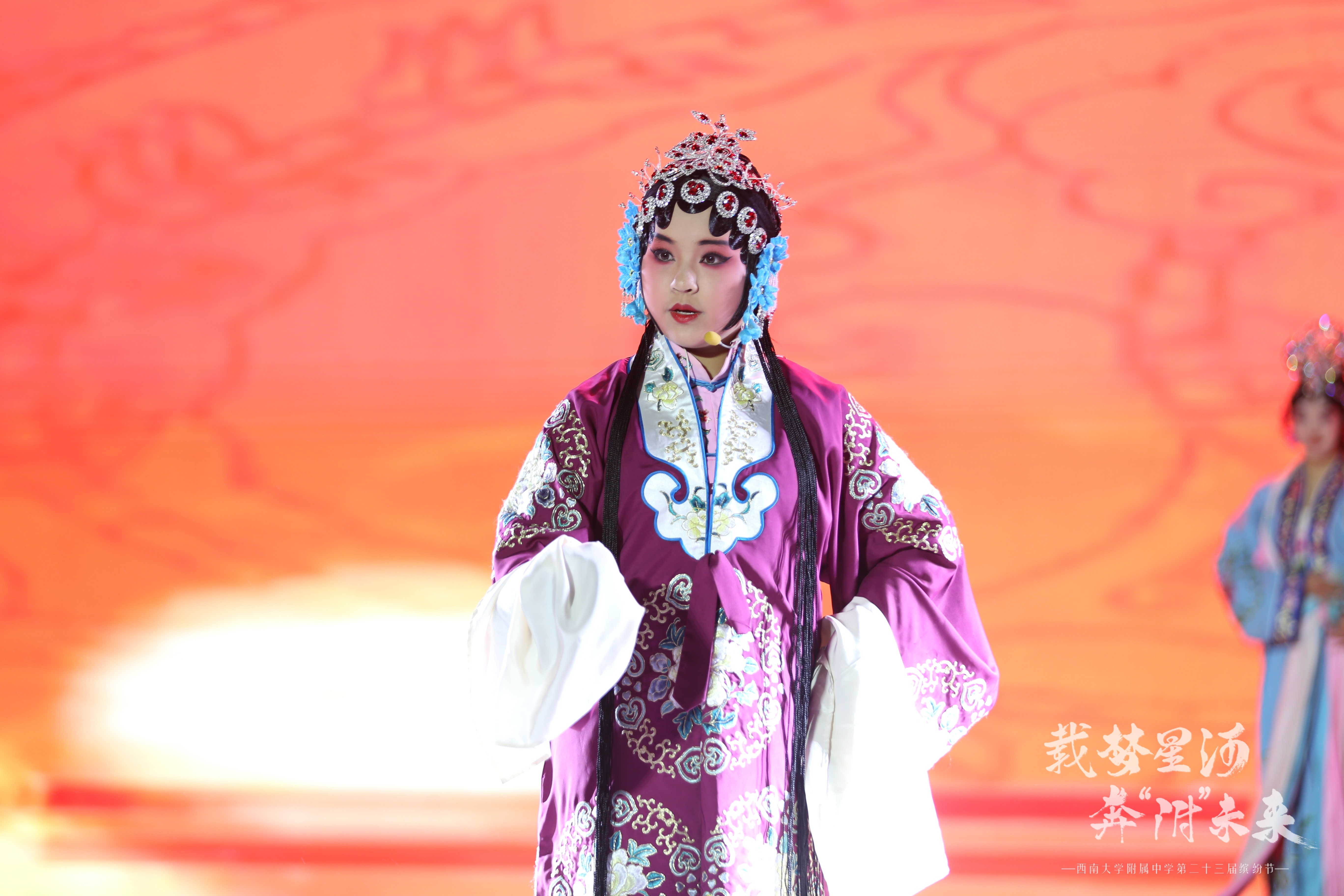 在众多演出中,一群衣着亮眼、妆扮艳丽的京剧人物格外吸引眼球。西大附中京剧社团的小演
