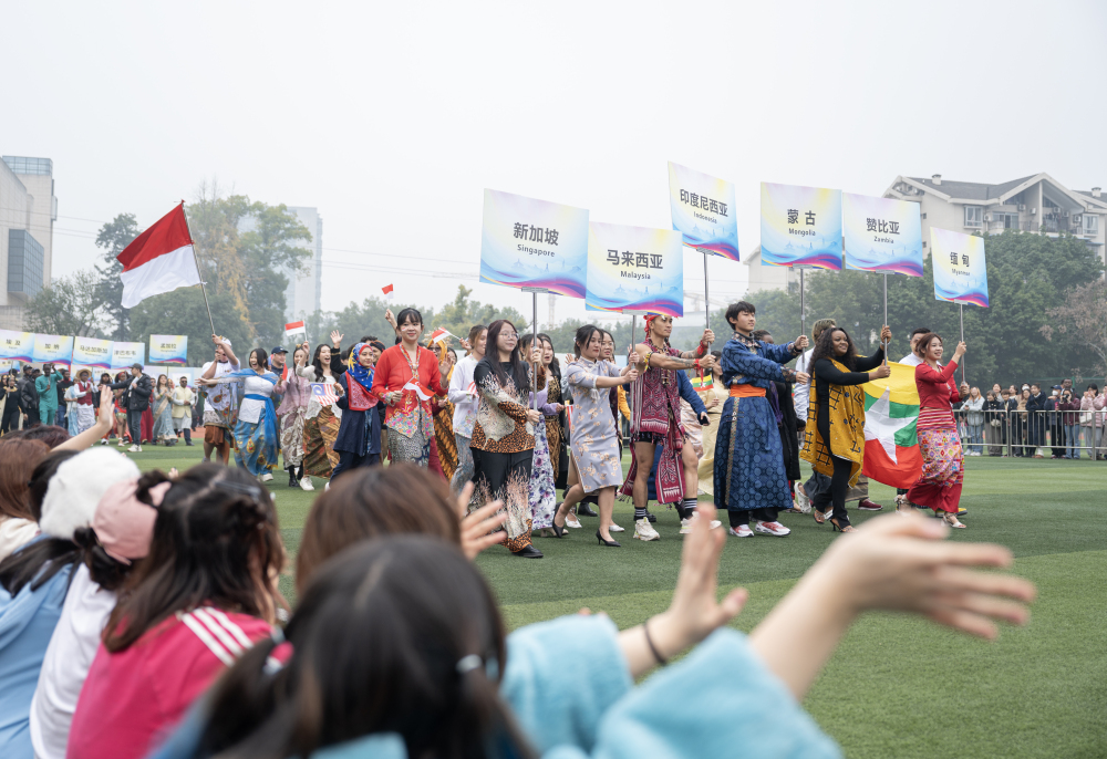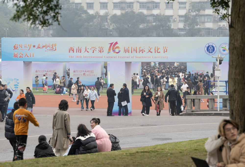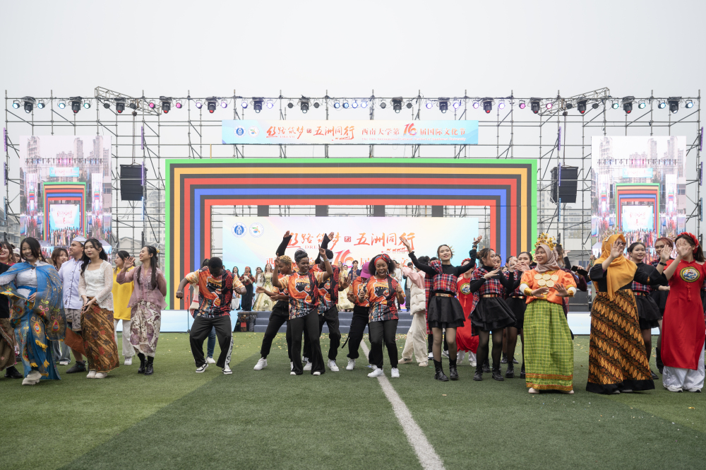 ▲12月10日下午,以“丝路筑梦 五洲同行”为主题的第十六届国际文化节在第四运动场上拉开帷幕。