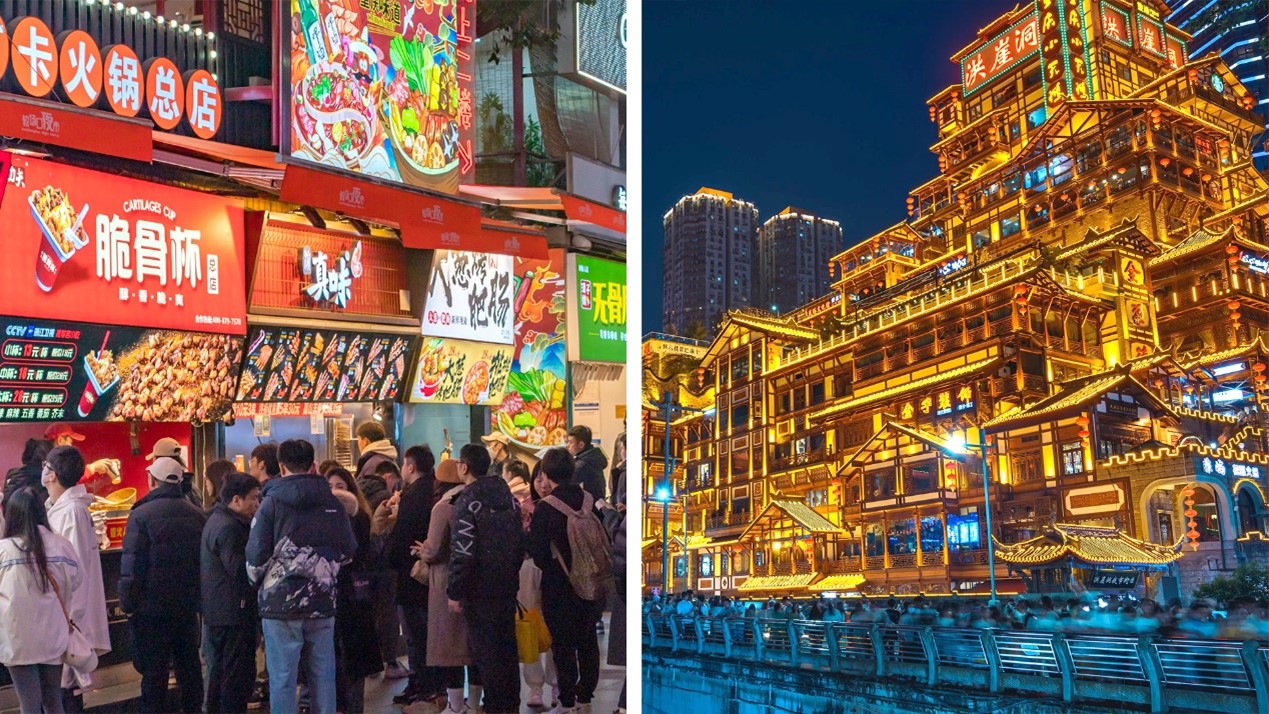 商圈人气的背后,是一个热腾腾的消费市场。在重庆,人们逛街的兴趣大增,掏钱也更加干脆,商品零售,达到1.28万亿元,增长了6.7个百分点;餐饮花费上,“吃”掉了2310.66亿元,比上一年增长两成。街头巷尾,都弥漫着麻辣鲜香的味道。