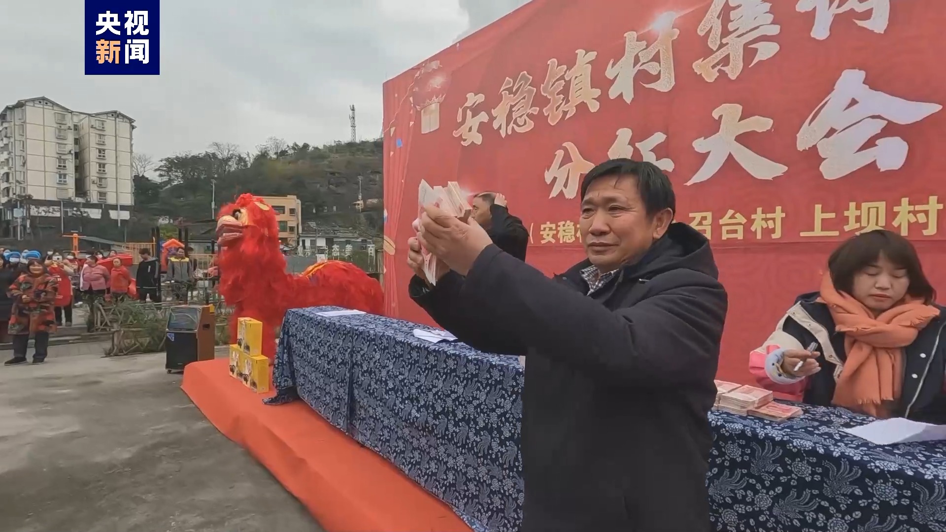 重庆市綦江区安稳镇安稳村党支部书记 张宗强:召台村分50000元,上坝村40000元,安稳村九队老百姓全队分红51000元。