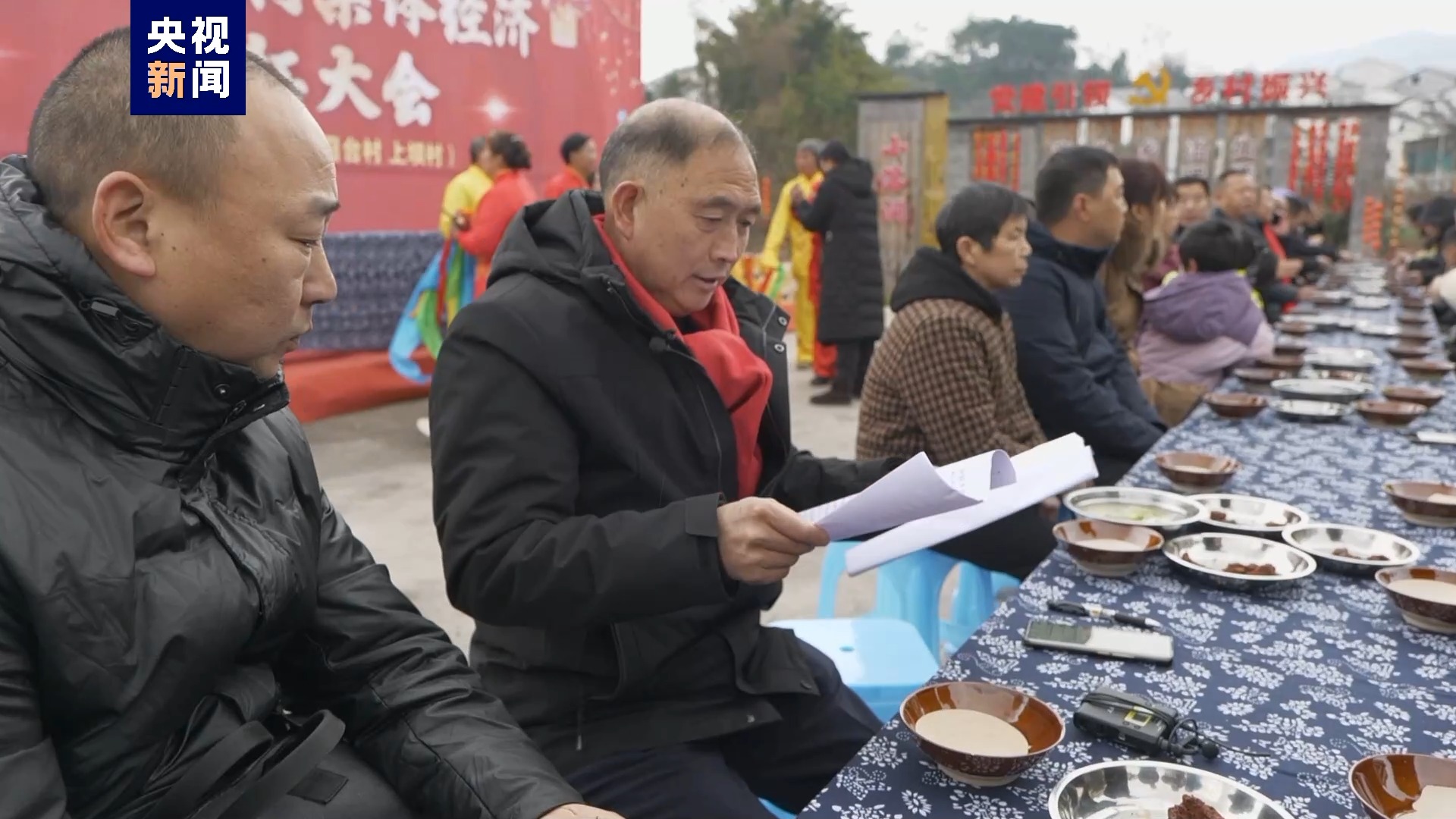 分红团年饭的场地选在安稳镇中心院坝上,为的就是声势要大,张宗强专门带了条红围巾,村民们陆陆续续来了。区里供销社的领导、邮政的领导都来了,安稳镇高朋满座。