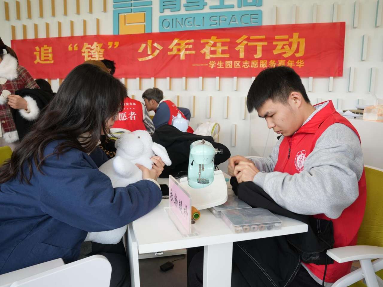 与此同时,志愿者们也在服务过程中收获满满。“补衣服、修拉链也算是我们的专业所长,不仅要补好,还要补得自然、漂亮。”2021级服装与服饰设计专业的陈宏炎表示,“能发挥自己的专业优势为同学们提供力所能及的服务,我很有成就感。”