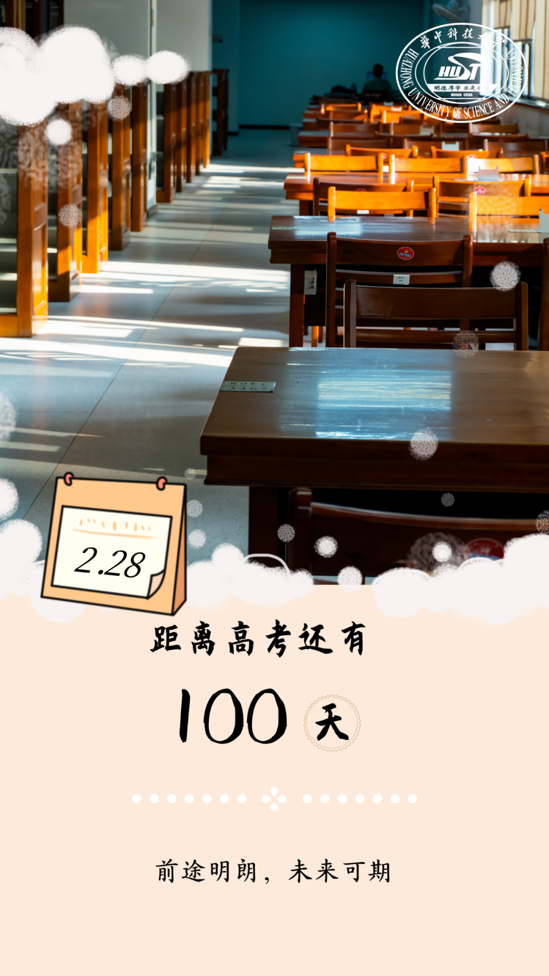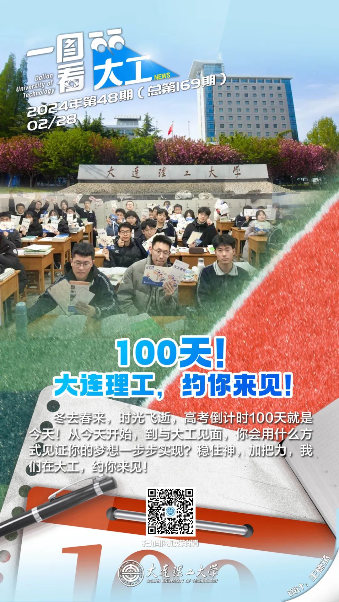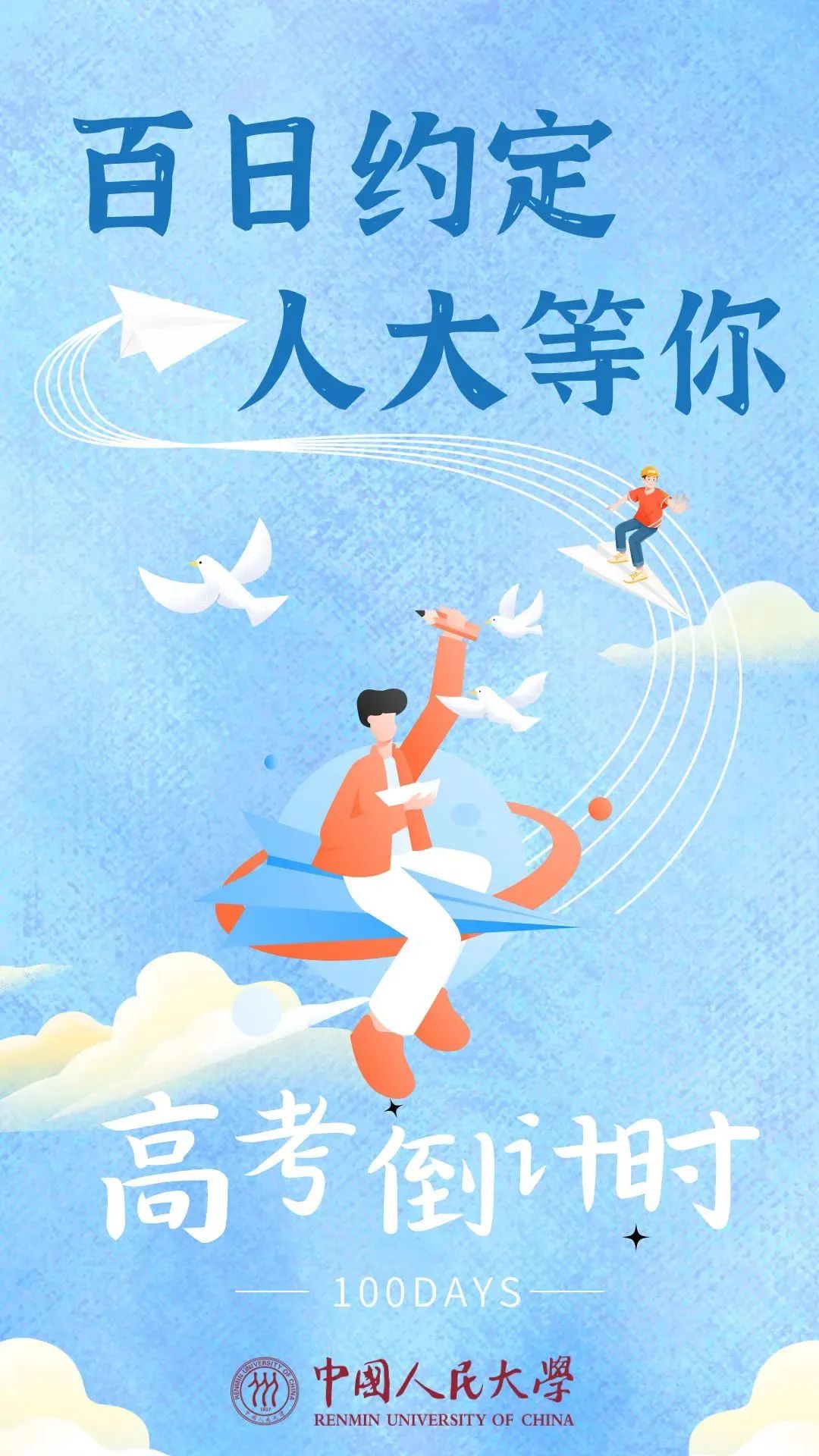 【倒计时100天!#高校团建式喊话等待高考的你#】珍惜平常的一天,共期不远的相见;倒计时的意义就是告诉我们,步履不停,笔耕不辍;可敬的赶路人,我们等你,于思源湖畔,于麦子成熟之时……#距2024年高考还有100天#,青春无悔,高考加油!(人民网教育频道)高考倒计时100天!这些高校喊话:等你!
