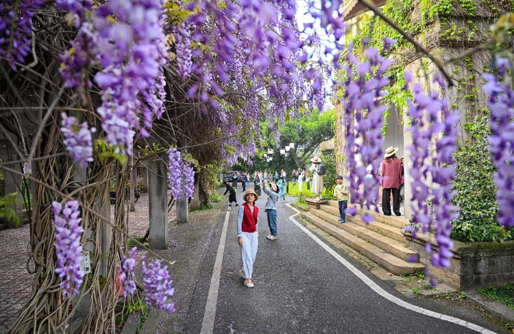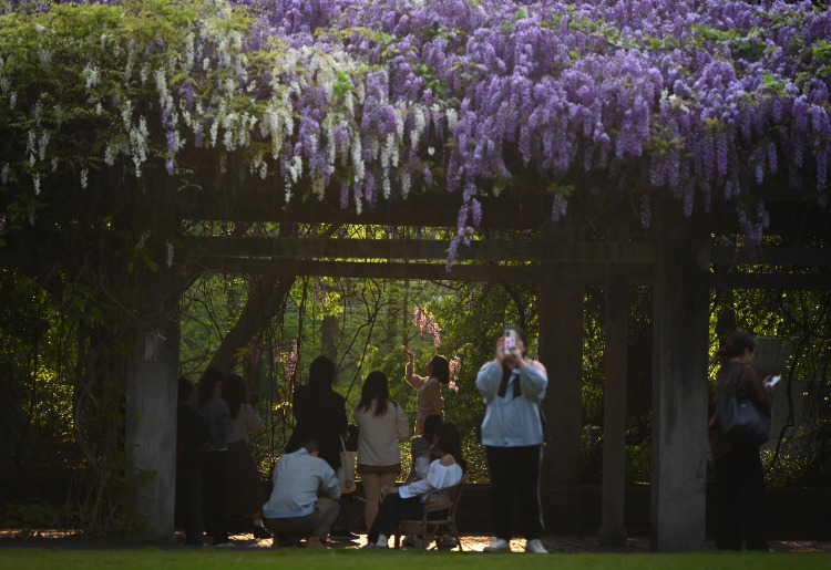 高校赏花季|betway88西汉姆联紫藤花开 宛如“一帘幽梦”