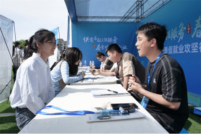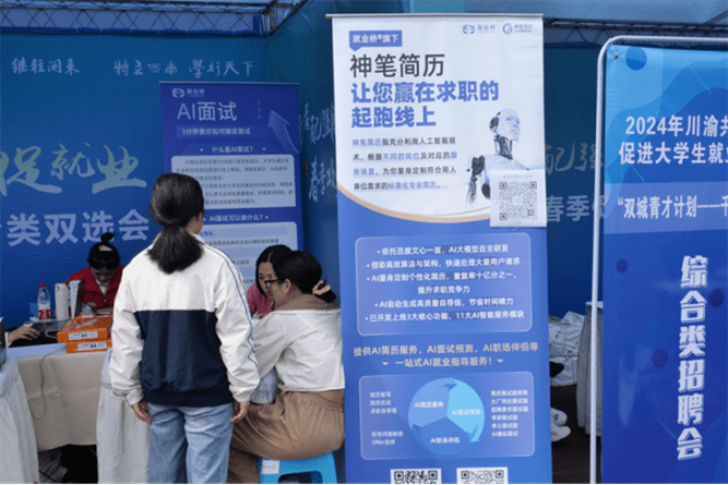 值得一提的是,双选会现场还设置了“基层就业”“参军入伍”“宏志助航就业培训”“共青团加油站”“职业发展助航”“神笔简历”“AI面试”等特色展位,为毕业生提供“针对性”“定制化”特色就业服务。