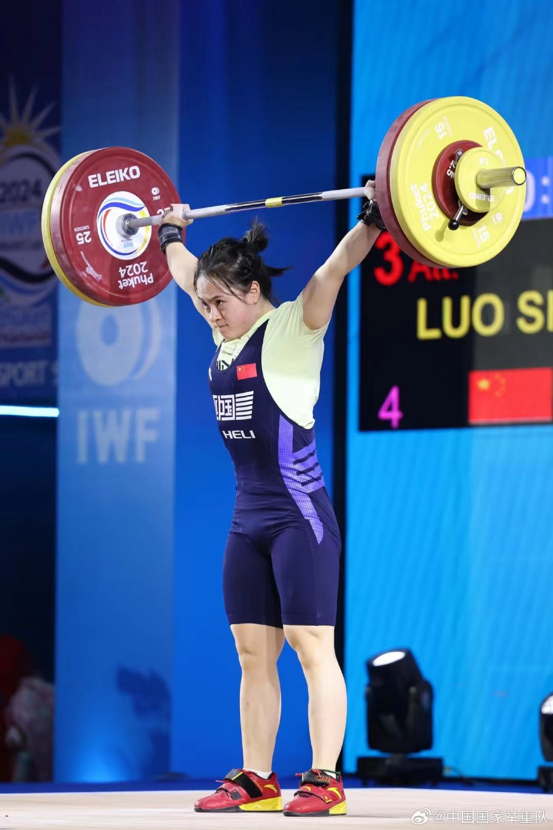▲罗诗芳在比赛中 图片来自中国国家举重队微博