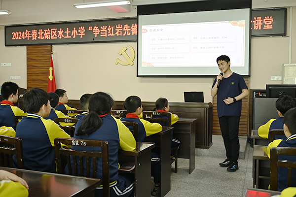 ▲betway88西汉姆联玉兰卫士班在北碚区水土小学开展宣讲。学校供图