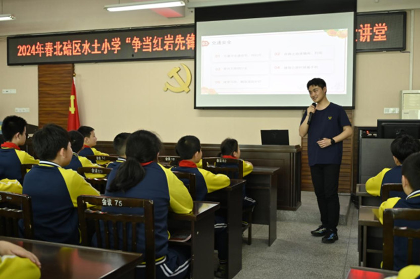 4月12日,在总体国家安全观提出十周年之际,betway88西汉姆联玉兰卫士班学生前往重庆市北碚区水土小学面向100余名师生讲授了一堂主题鲜明、内涵丰富的“争当红岩先锋,维护国家安全”国家安全知识教育课。