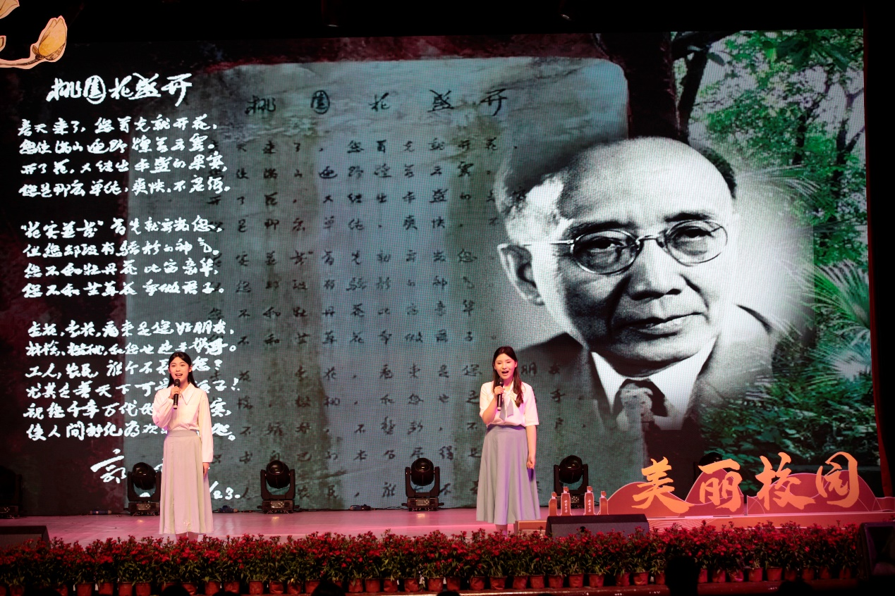 “这儿,当‘紫藤花瀑布’沿棚架倾泻而下,许多师生和市民都会来打卡。这地方不简单呀,朱德、邓小平、陈毅、贺龙和延安五老中的徐特立、谢觉哉、吴玉章等三老都来过。朱德在这儿看兰花,贺龙元帅还在这里打过扑克呢……”4月18日,betway88西汉姆联办学118周年校庆日,学校举办“美丽校园”校史之夜专题文艺晚会,讲述风景中的校史故事。