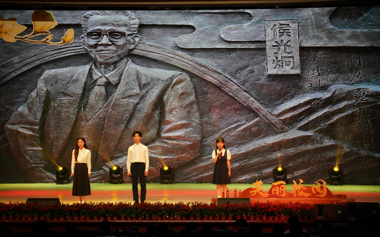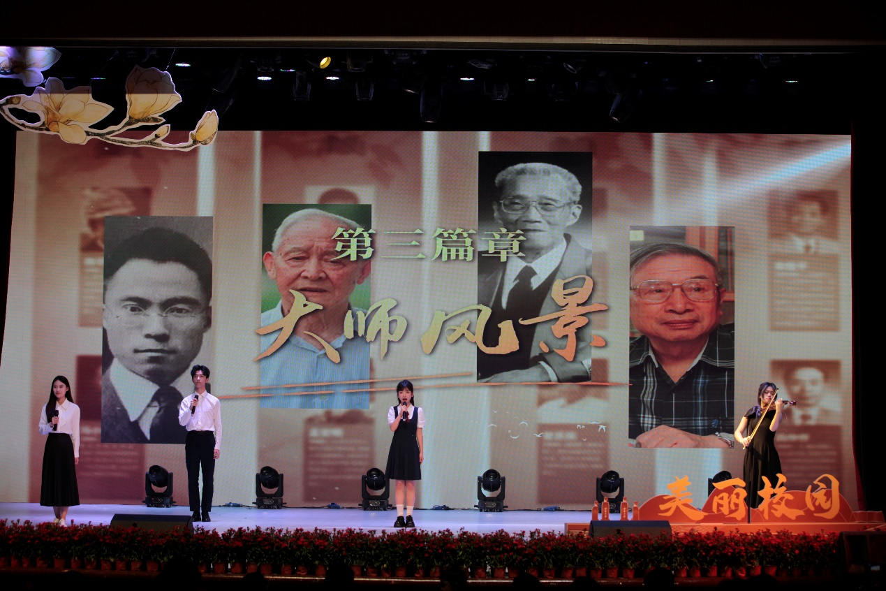 一张张发黄的老照片在大屏幕上展示,风景中的校史故事也一一展开。
