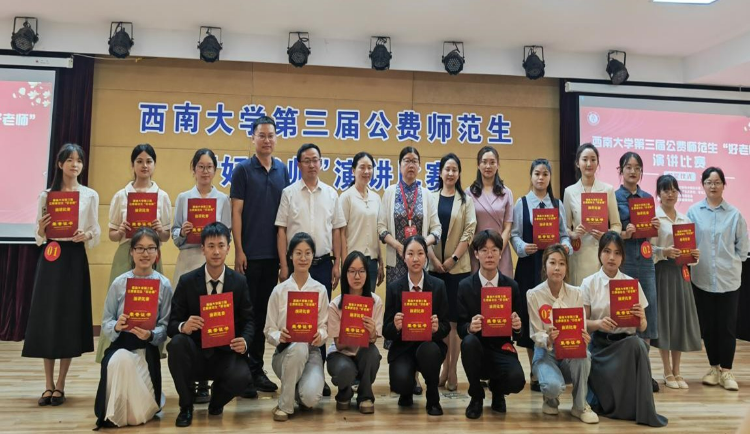 董小玉教授作比赛点评,她以“奋斗”“传承”“擎灯”三个关键词,点击教师应有的精神着装:静水深流,做教育事业的奋斗者;润物无声,做教育之火的传承者;播撒星光,做育人之路的点灯者。她寄语公费师范生,在今后的教师职业生涯中,拒绝躺平、拥抱奋斗,用充满关怀的品质、知识的积淀、智慧的力量,以教育家精神擦亮育人、育心、育才的青春画卷,点亮熠熠生辉的教育星海!