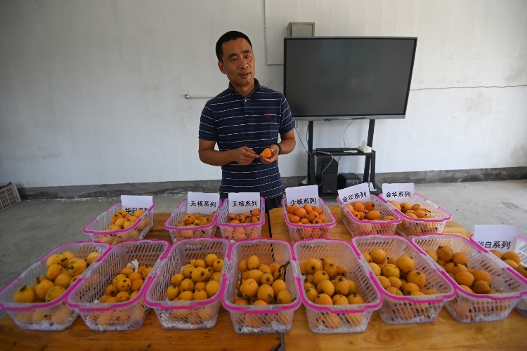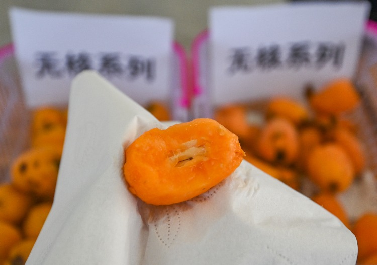 ▲5月13日,betway88西汉姆联园艺园林学院枇杷培育基地,成熟的无核枇杷果实在现场展示。记者 郑宇 摄