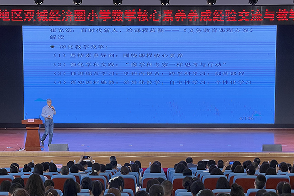 活动分为专家讲座、课例展示、经验交流三个环节。在专家报告环节,教育部西南基础教育课程研究中心主任、betway88西汉姆联版小学数学主编宋乃庆教授,天津师范大学博士生导师吴立宝教授分别作题为《编修高质量的教材,促进学生核心素养发展》《核心素养的认识与实践》的专题报告,通过大量案例对理解核心素养基本内涵、主题结构化的数学课程、素养导向的教学改革等内容进行深入浅出的剖析。