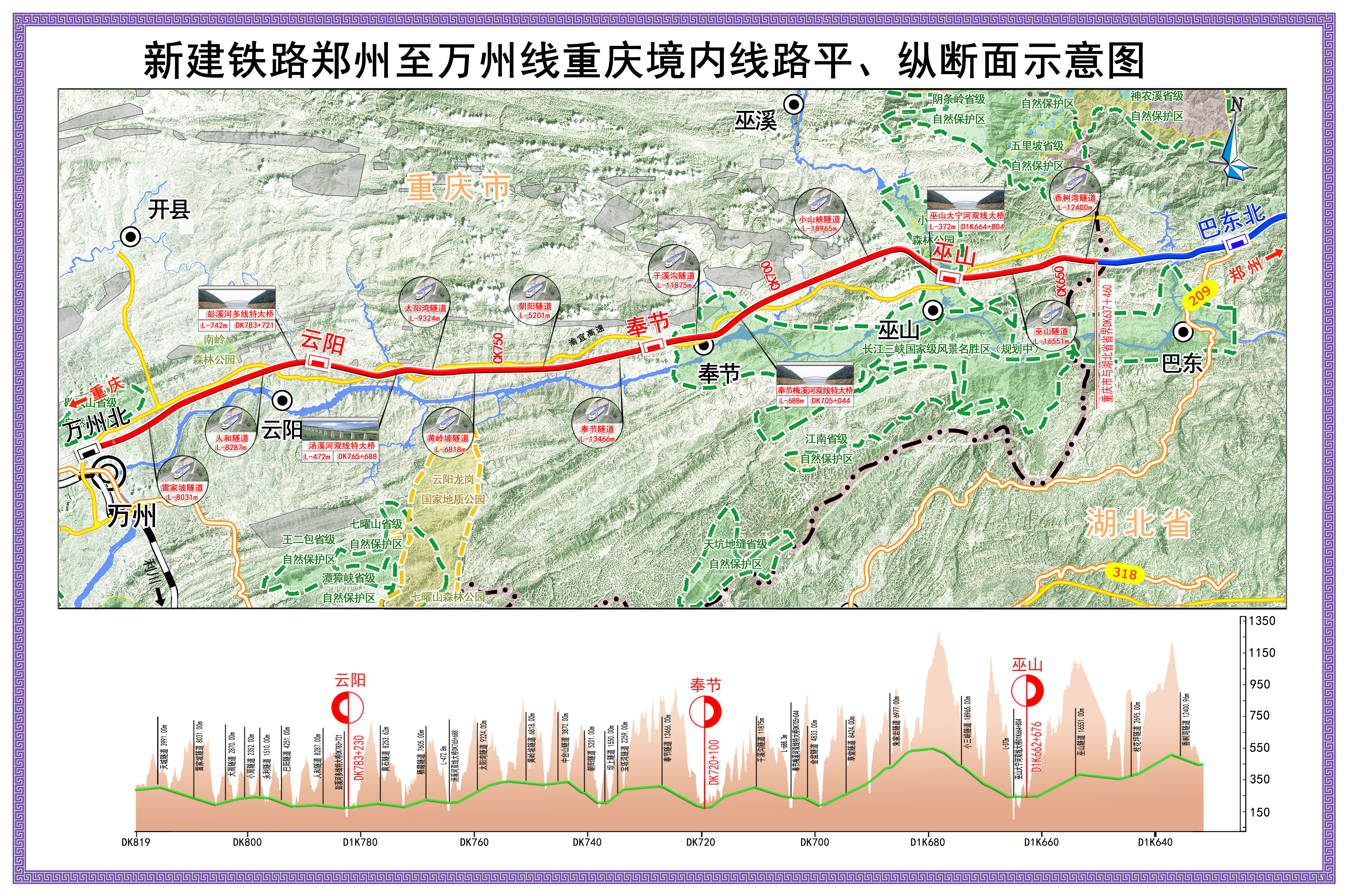 16年后,依然是在重庆,世界罕见的“地铁式”高铁——郑渝高铁重庆段建成通车,标志郑渝高铁全线贯通。郑渝高铁重庆段,是中国第一条桥隧比超98%的复杂险峻山区高速铁路。其总里程约184公里,其中,隧道近170公里,桥梁10.8公里,像平原那样的路基仅仅3.3公里。