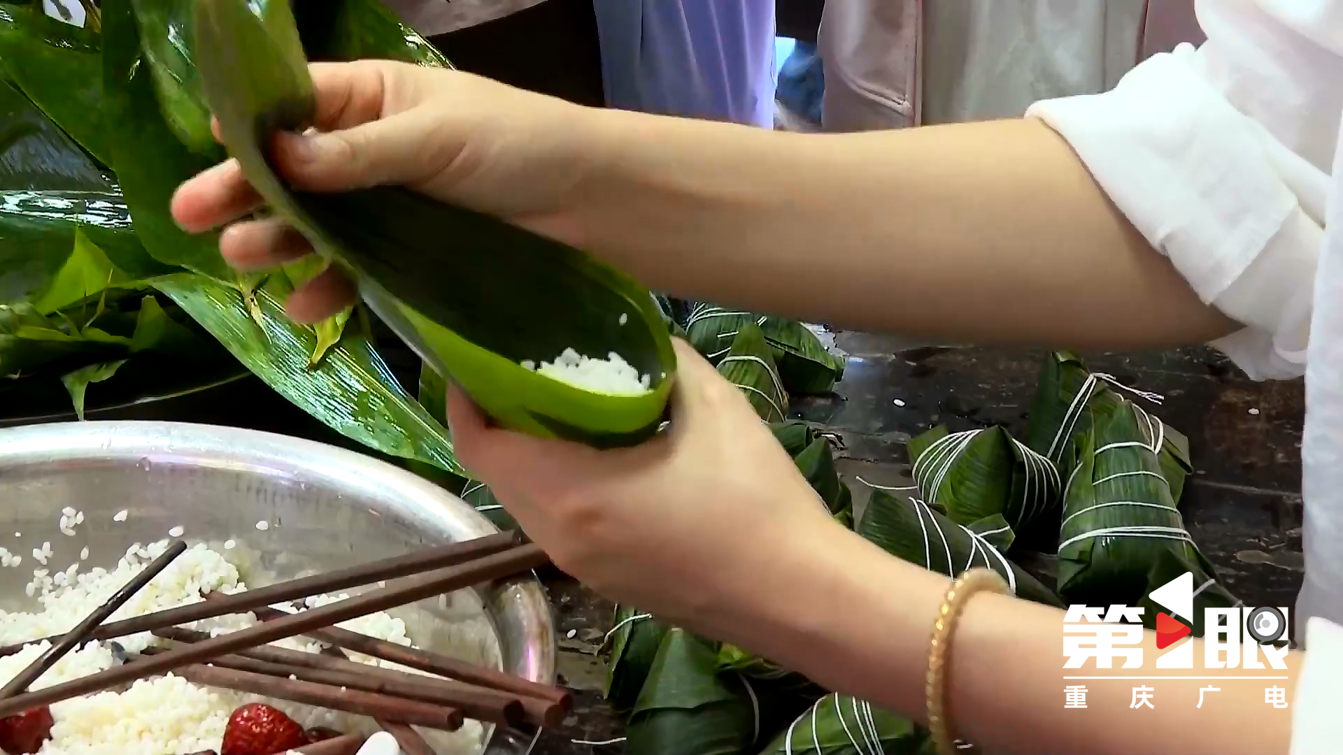 随后,留学生们亲手体验包粽子。折叶、填米、放馅,之后用绳子牢牢地把粽子绑住,大家做得有模有样。