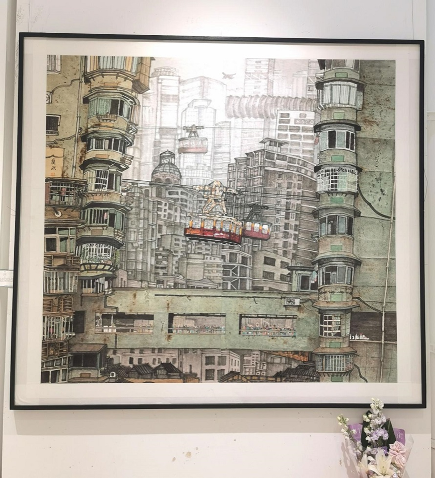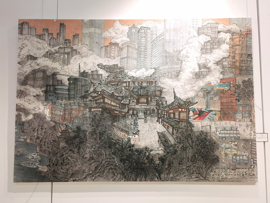 betway88西汉姆联美术学院中国画创作方向硕士研究生田苗,来自甘肃,在她的印象中,重庆就像是一座天空之城,在此次毕业作品中将重庆现代化的城市建筑与敦煌壁画结合起来,突破传统中国画主要采用水墨的特点,大胆采用水彩、丙烯等材料,运用多种技法,耗时三个月,创作了这副作品。