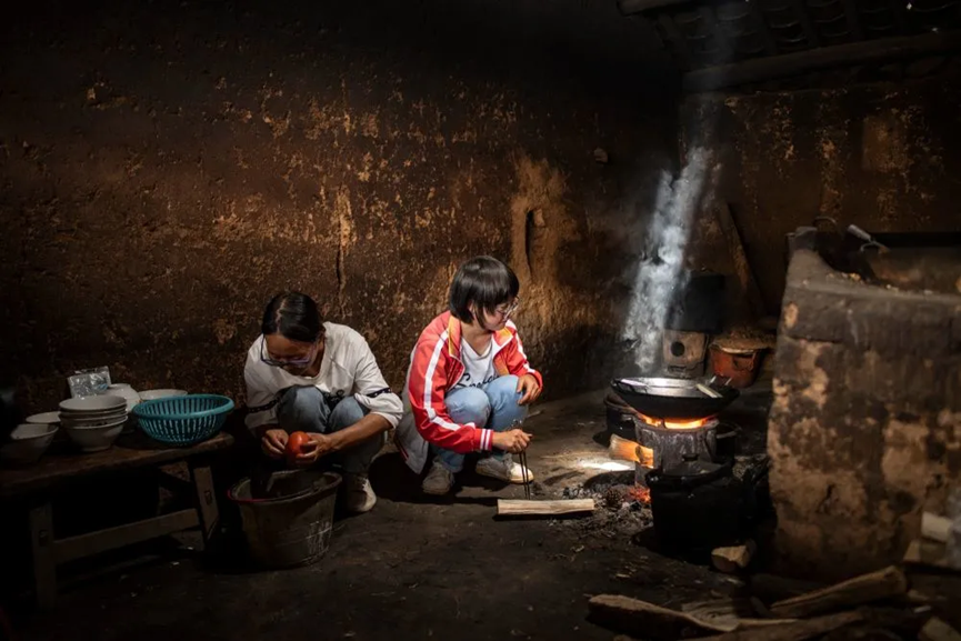 范天兰(右)和姐姐一起在家做饭。新华社记者 江文耀 摄