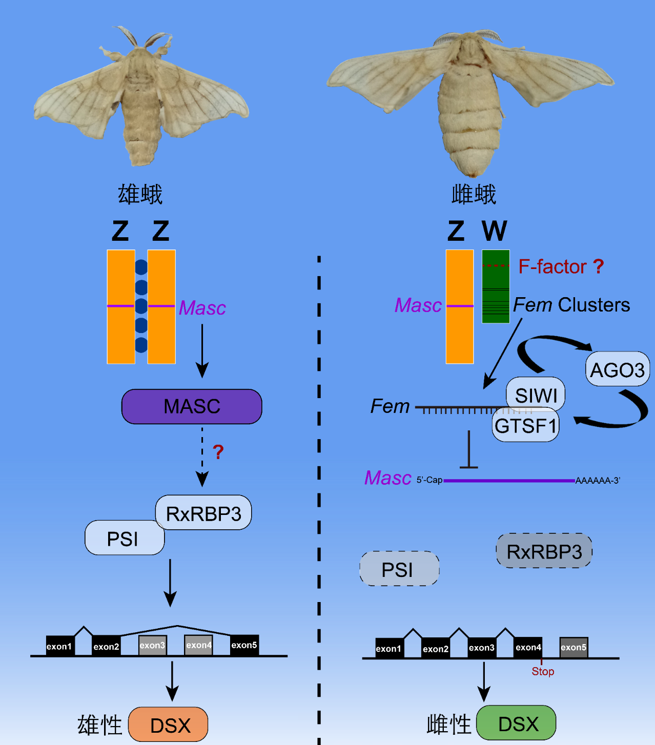 家蚕性别的决定机制到底如何,一直是业界关注的焦点。不同于大多数昆虫性染色体组为XX/XY系统,以家蚕为代表的鳞翅目昆虫性染色体在昆虫界独树一帜,其性染色体以ZZ/ZW系统为主,其中雄性为ZZ,雌性为ZW。1916年,日本学者首次在家蚕中发现W染色体。然而,该染色体序列一直没有被破译。
