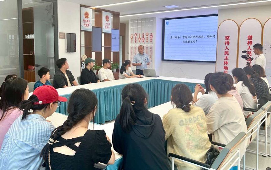 “同学们,刚刚我们参观的民主村,city不city啊?”以时髦的网络段子引入课堂讲述,罗进老师一句话便让课堂气氛活跃了起来。在生动的案例引导下、交流讨论的轻松氛围中,同学们又一步步深入思考了“何为民生”“中国如何关注民生”“中国式现代化,民生为何为大”三个问题。