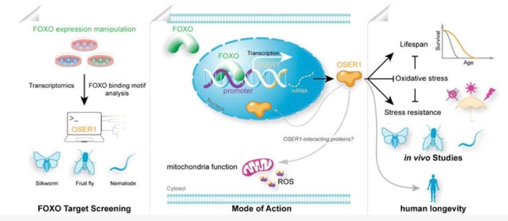 “人类受试者研究结果也支持OSER1影响人类寿命的观点。”宋江波介绍,团队研究发现,90岁以上的长寿老人与年轻对照组相比,检测到OSER1基因中存在49个常见单核苷酸变异(SNP),其中7个与长寿显著相关。此外,在长寿女性中,存在次等位基因频率与绝经年龄推迟之间具有显著关联的SNP。