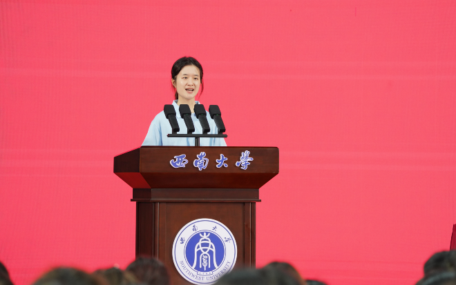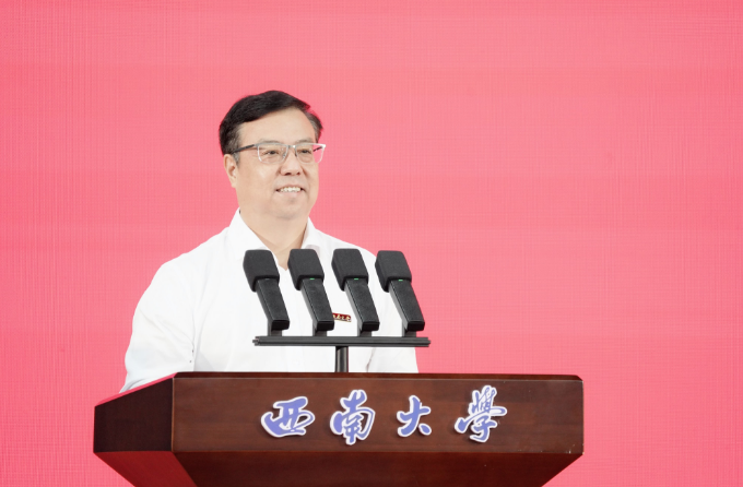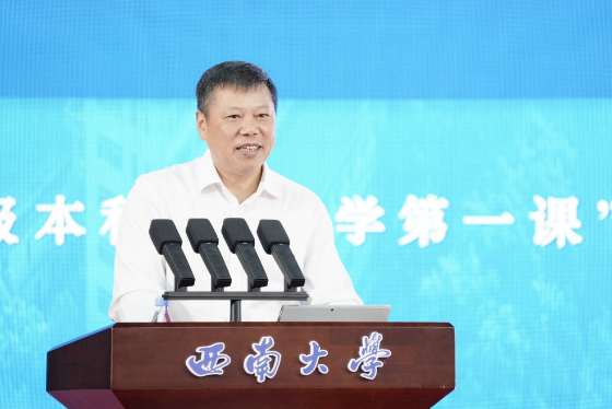 典礼结束后,党委书记张卫国以《让跃动的青春绽放绚丽之花》为题,聚焦“特立西南、学行天下”的大学精神,围绕“渊源”“蕴意”“践行”三个方面,为同学们讲述了“开学第一课”。