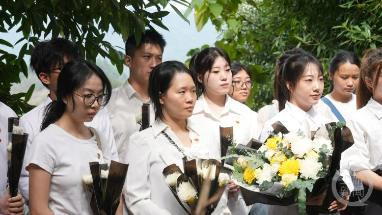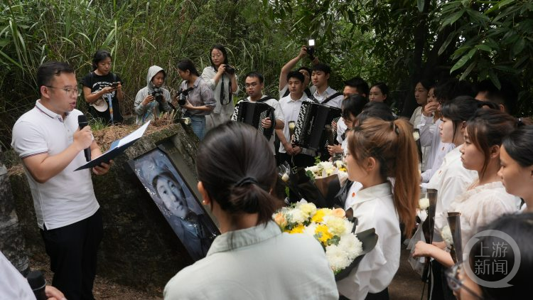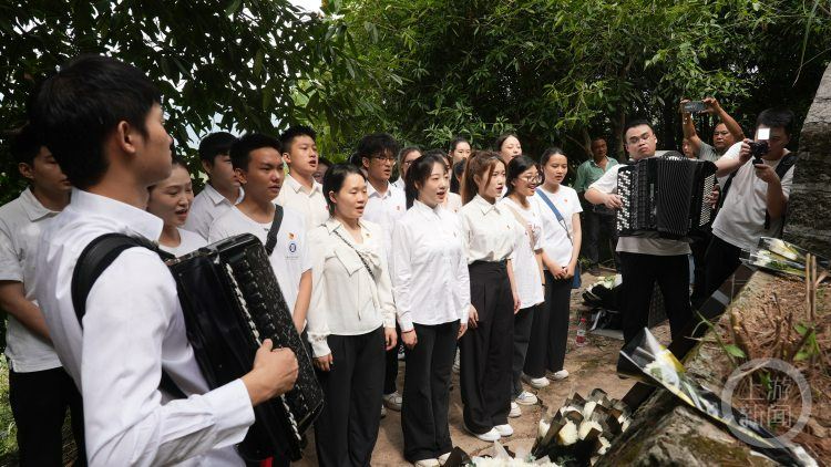 集体默哀后,学生们拉起手风琴,深情合唱了《我的祖国》。“这首歌我们专门排练了很多遍,学姐和我们都非常热爱音乐,我们希望用这首歌告慰英灵,告诉学姐,这盛世如您所愿!”甘思源说。