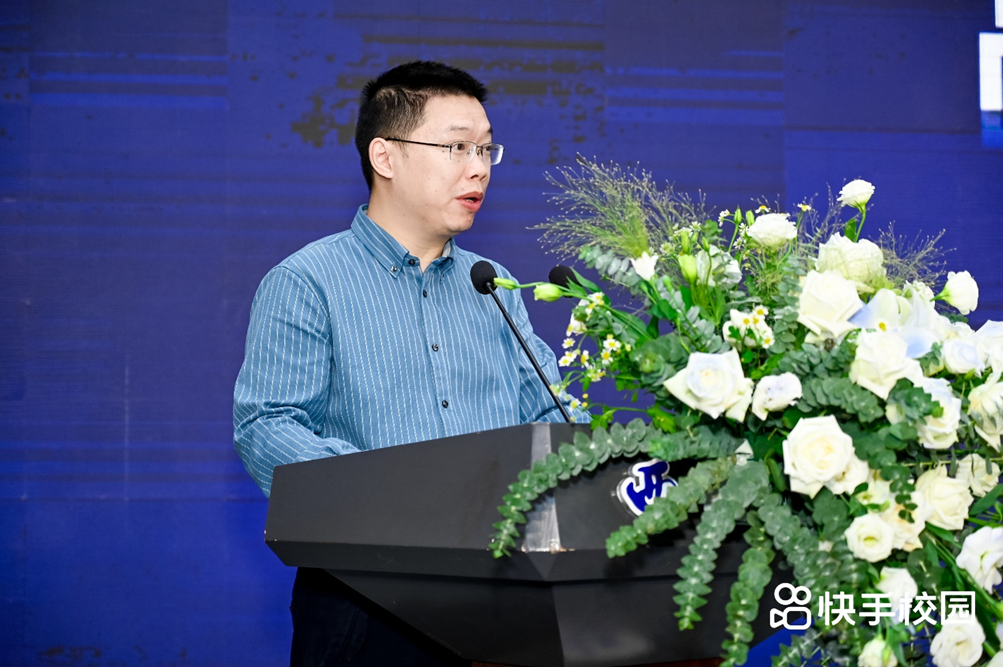 随后,快手校园业务负责人崔畅介绍了当前该板块的发展情况。他表示,高校产学研联盟的建立,是快手校园在校企合作领域的一次重要尝试,通过资源整合与优势互补,各方将共同探索新闻传播教育与新媒体实践的融合之路。他相信,在校企双方的共同努力下,一定能够培养出更多具备创新思维和实践能力的新闻传播人才,为行业发展贡献更多的智慧和力量。