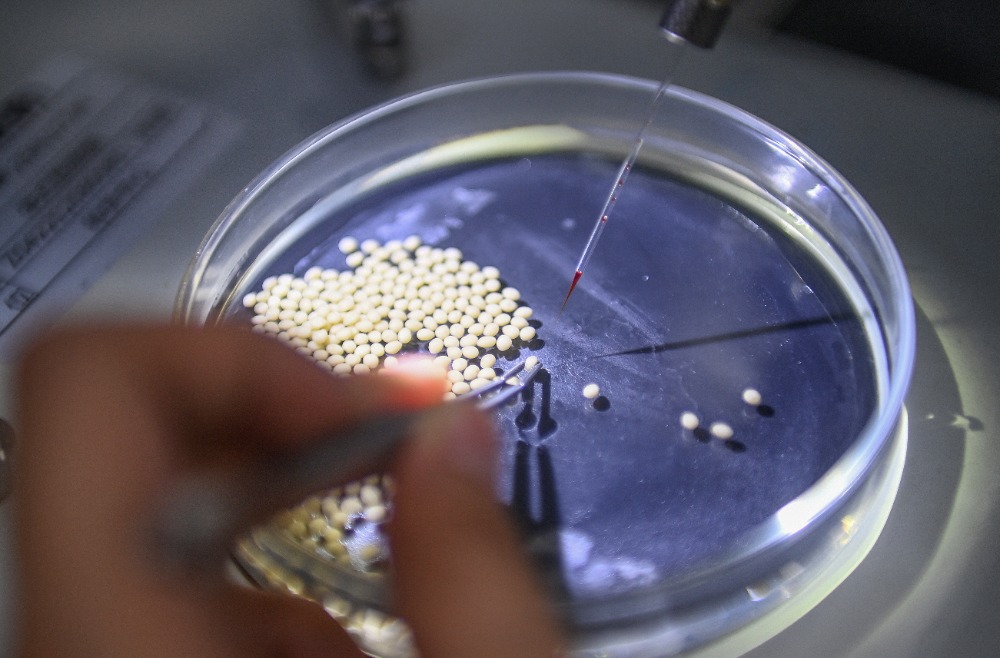 ▲10月24日,西部(重庆)科学城种质创制大科学中心,罗非鱼创制团队科研人员正在对罗非鱼受精卵进行显微注射。记者 郑宇 实习生 巨文俊 摄