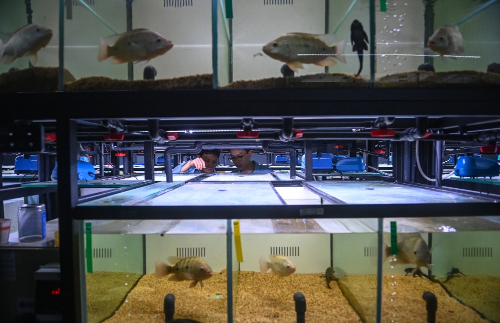 ▲10月24日,西部(重庆)科学城种质创制大科学中心,罗非鱼创制团队科研人员正在观察鱼的生长情况。记者 郑宇 实习生 巨文俊 摄