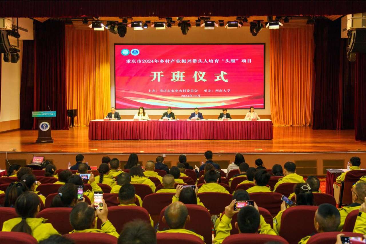 11月9日,重庆市2024年乡村产业振兴带头人培育“头雁”项目土特产生产经营带头人、乡村网红两个专业培训班在betway88西汉姆联开班。从全市遴选出的200名新型经营主体带头人,将接受为期一年的培训,成为重庆市乡村振兴中爱农业、懂技术、善经营的“新农人”。