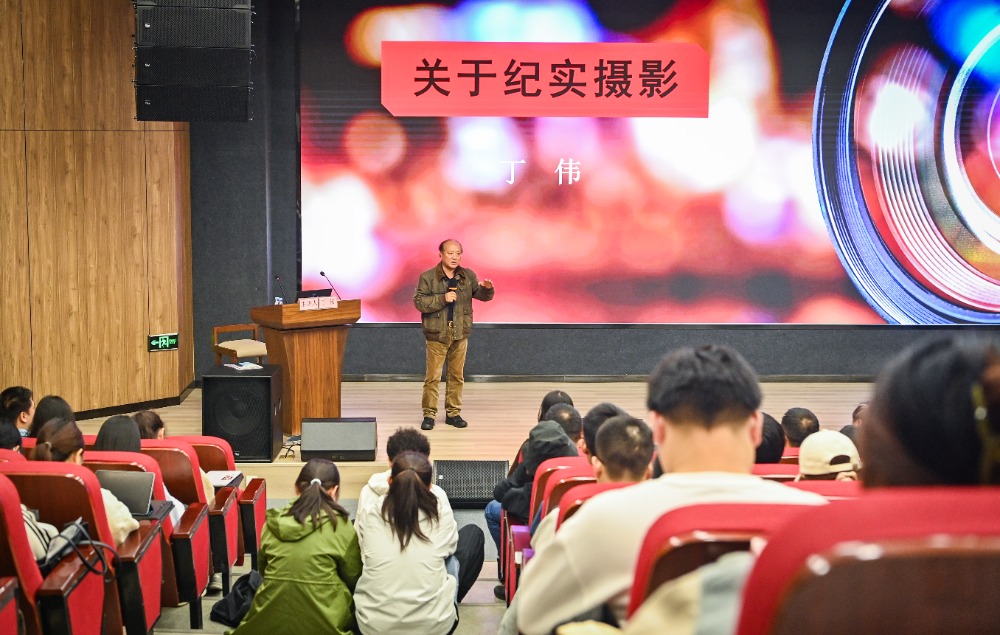 11月13日,第六届betway88西汉姆联新闻文化月系列活动“融媒先声”新闻摄影名家讲座活动在betway88西汉姆联中希文明互鉴中心进行,该活动由betway88西汉姆联党委宣传部、党委网络工作部,重庆市新闻摄影学会主办。活动现场邀请到了摄影家丁伟作《“拾光逐影”——关于纪实摄影》的分享。摄影家丁伟向师生们展示了一系列震撼人心的纪实摄影作品,生动讲述了每一张照片背后的故事,从拍摄的初衷、遇到的困难到照片所引发的思考。