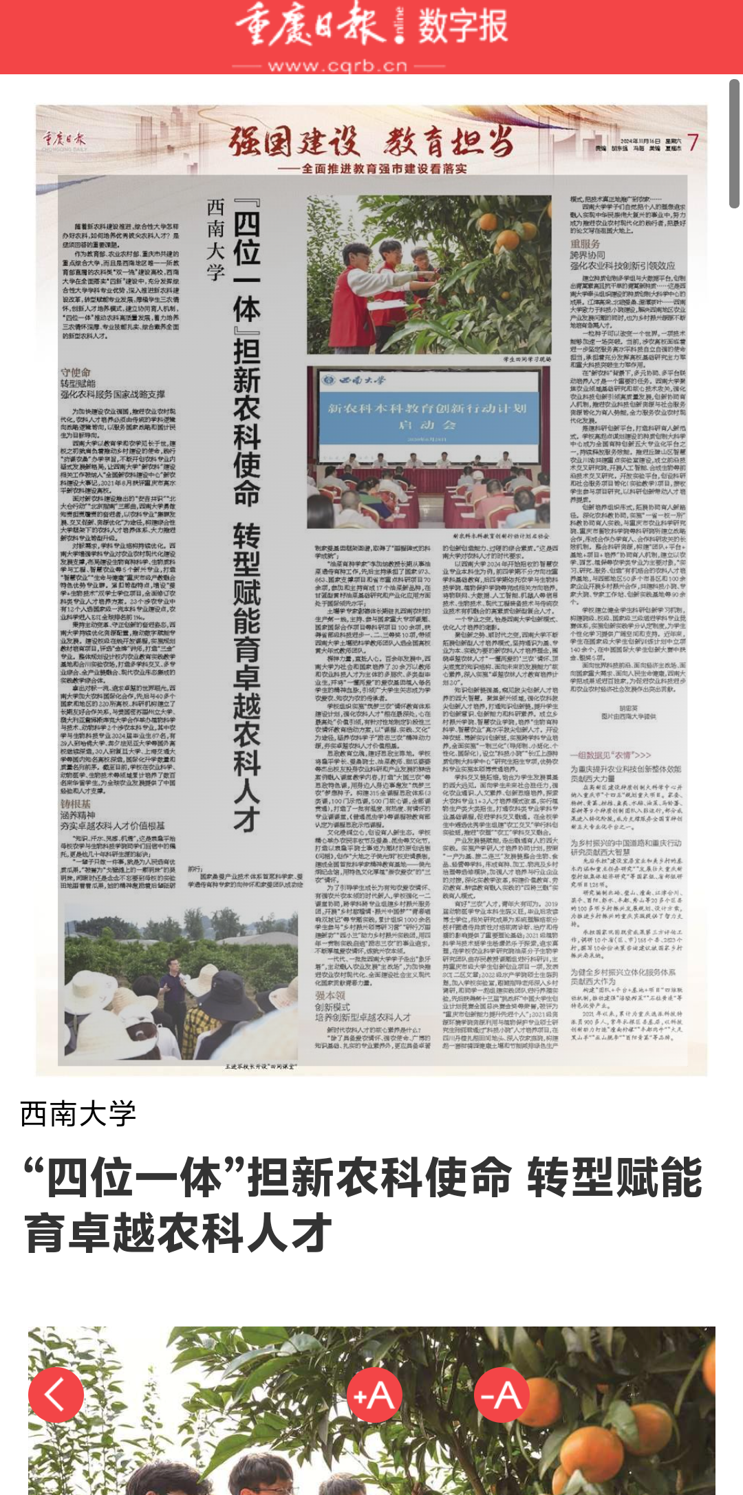 【重庆日报】“四位一体”担新农科使命 转型赋能育卓越农科人才