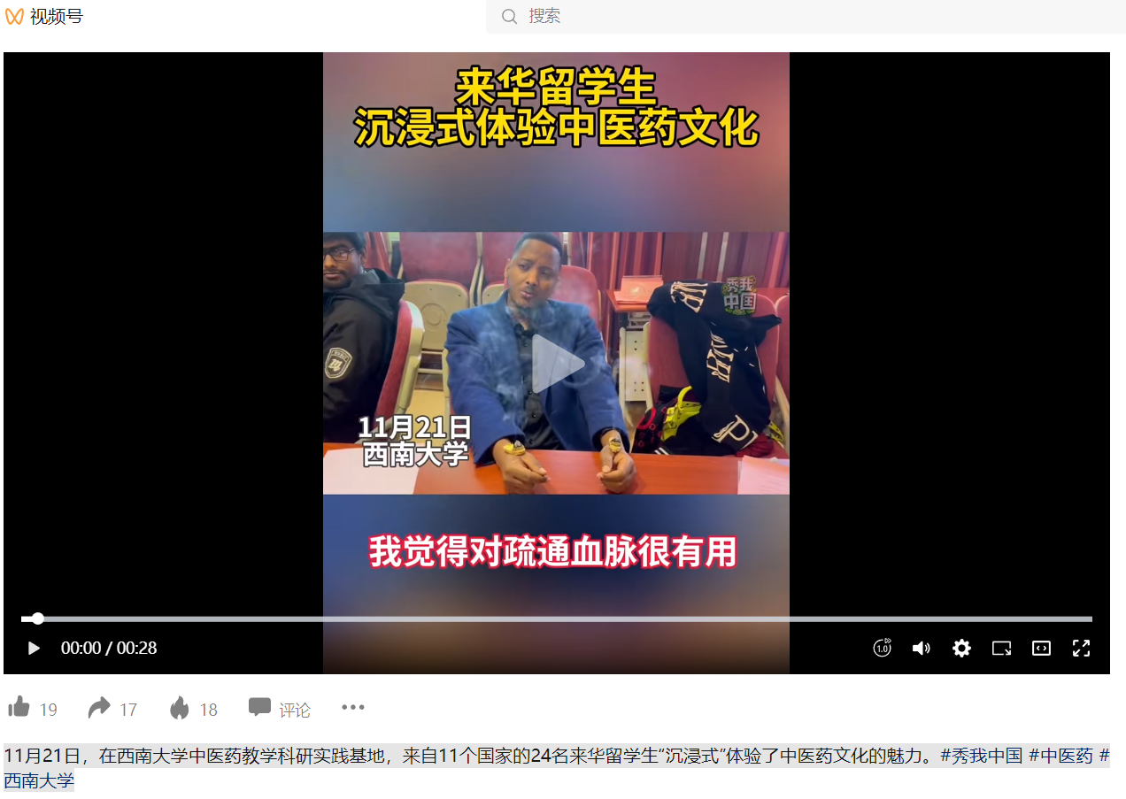 11月21日,在betway88西汉姆联中医药教学科研实践基地,来自11个国家的24名来华留学生“沉浸式”体验了中医药文化的魅力。#秀我中国 #中医药 #betway88西汉姆联